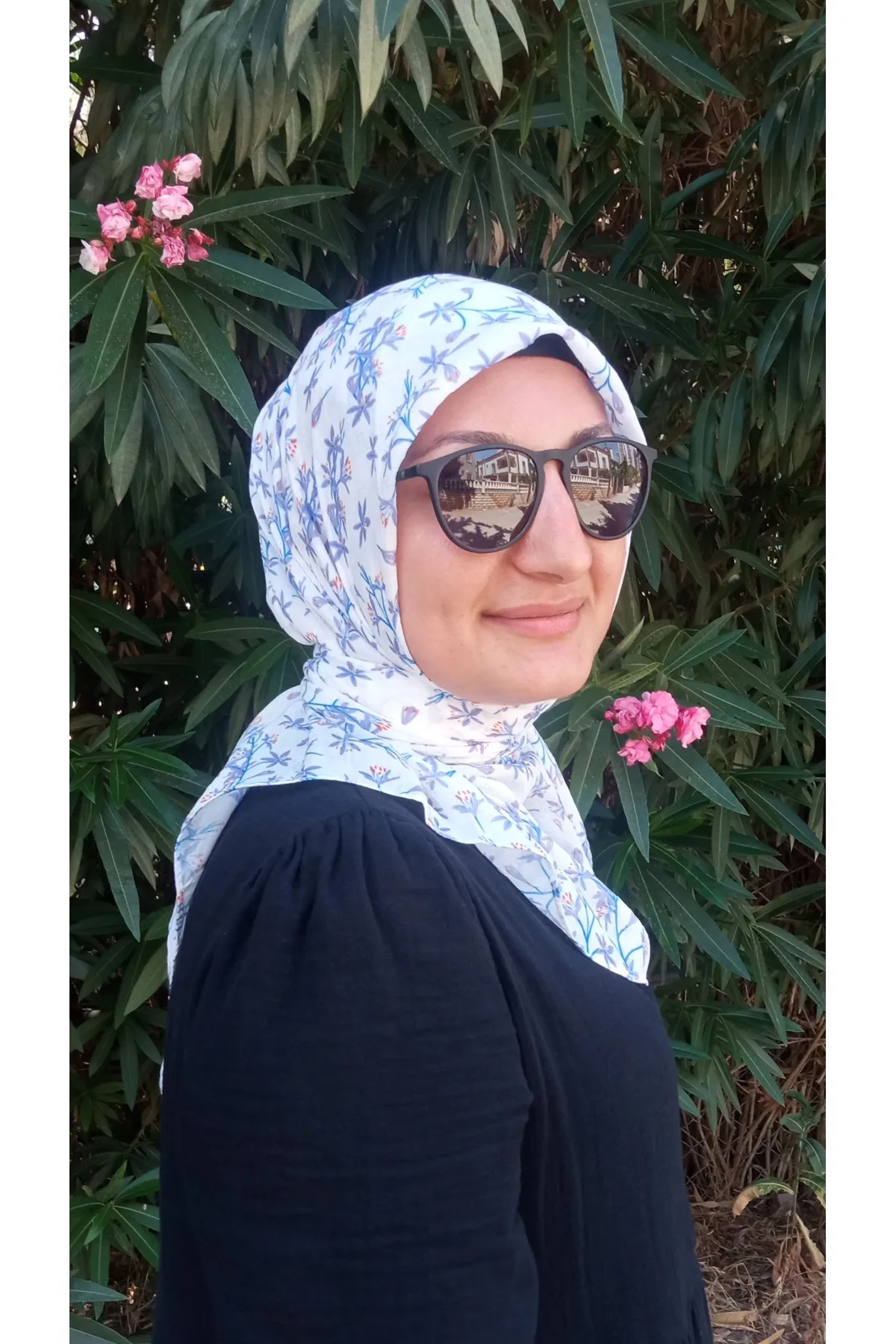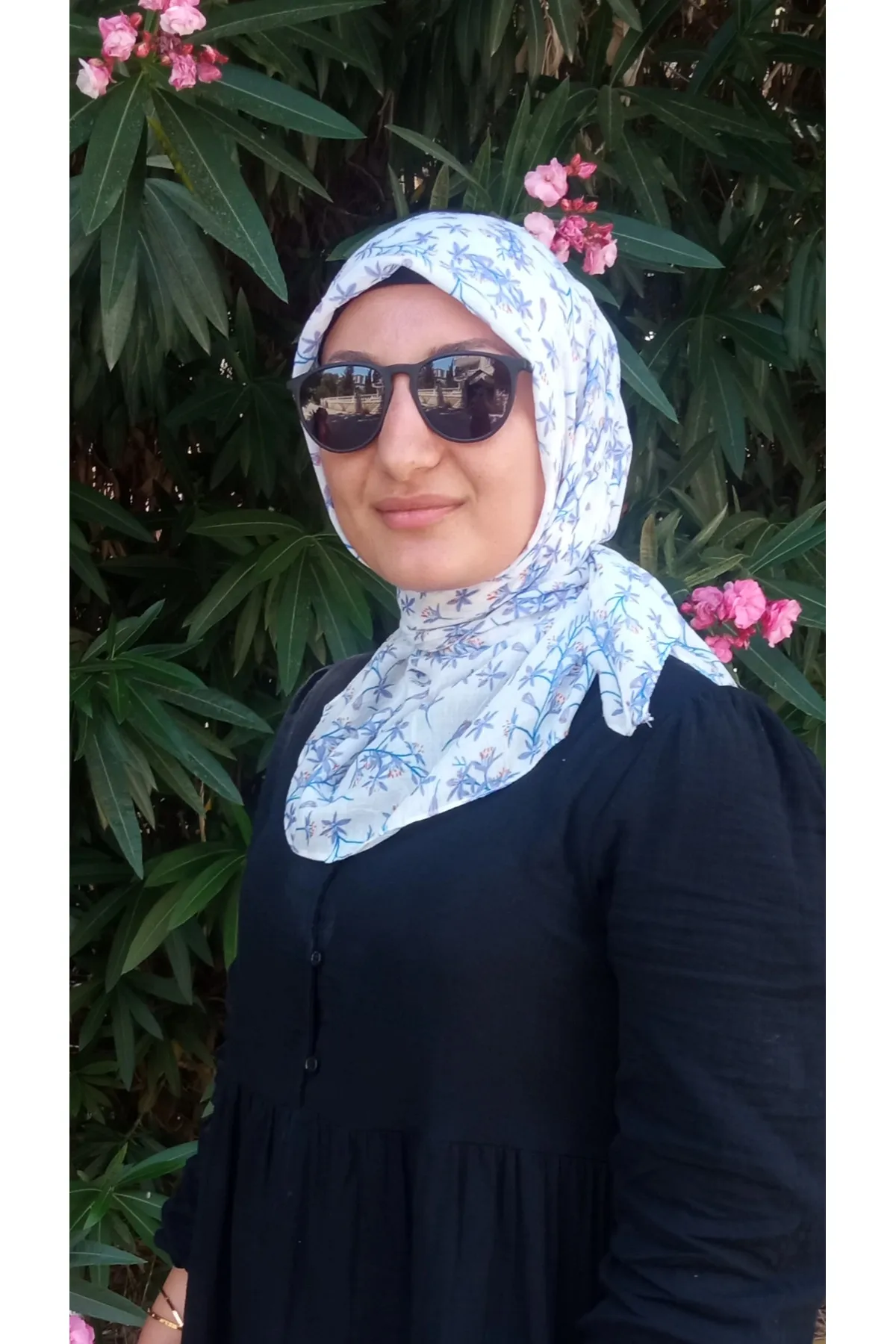Beyaz Lila Çiçek Detaylı Eşarp